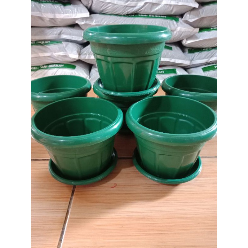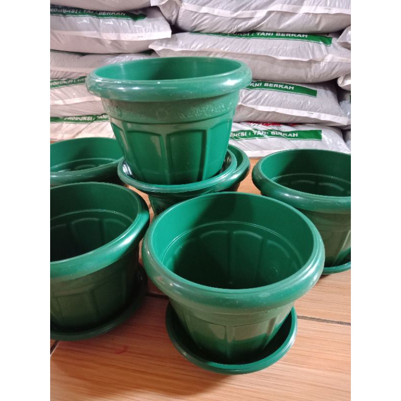 Pot Bunga SL 7514 Pot Tanaman Hias Warna Hijau 14cm + tatakan pot