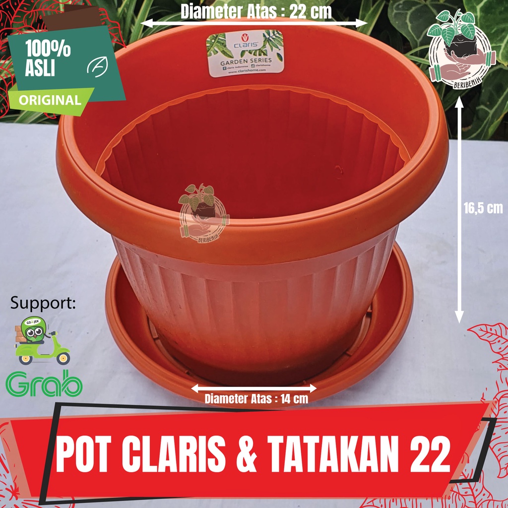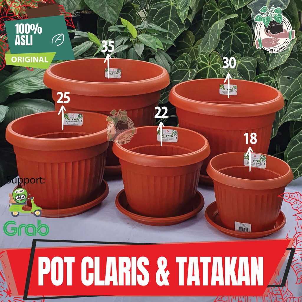 Pot Claris dan Tatakan Alas Pot Tanaman HIas Plastik Cantik Untuk Tanaman Hias Pot Dekorasi Cantik Pajangan untuk Teras Rumah