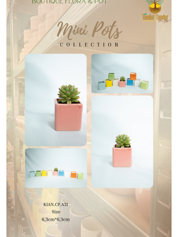 Pot Mini Pot Keramik Pot Kotak Pot Tanaman Hias Motif Kotak Berbagai Macam Warna