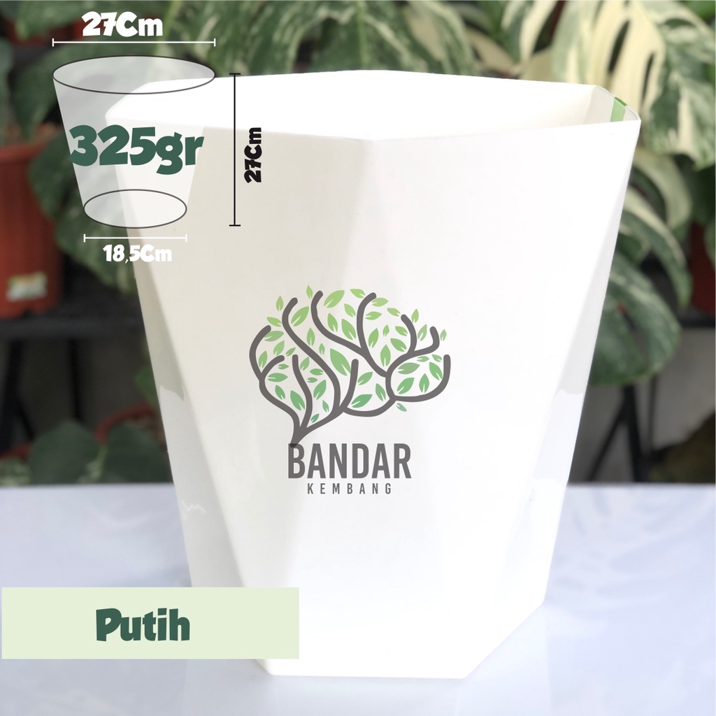Pot Putih Cantik Diamond 35 - Pot Besar Plastik Tebal Murah - Pot Tanaman Hias Bunga - Dekorasi Rumah Minimalis Aesthetic - Pot Bunga Bahan Plastik Besar