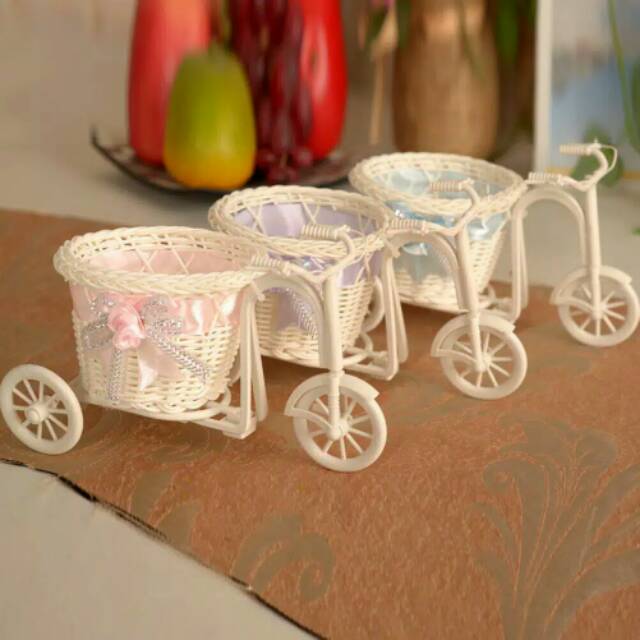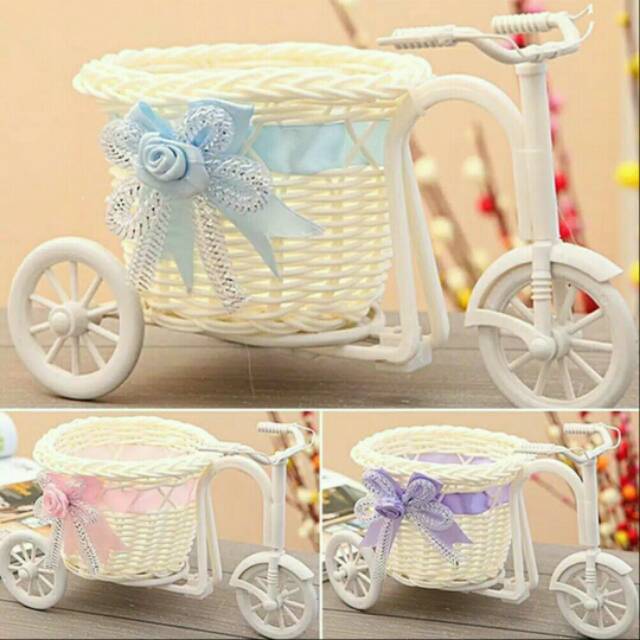Pot Sepeda Pot Bunga Plastik Shabby Chic Vas Bunga Kembang Palsu Sepeda Rotan Rattan