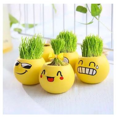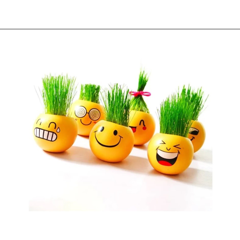 Pot Tanaman Hias Rumput Emoji Vas Bunga Emoticon