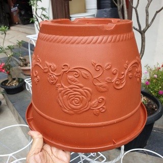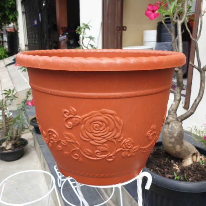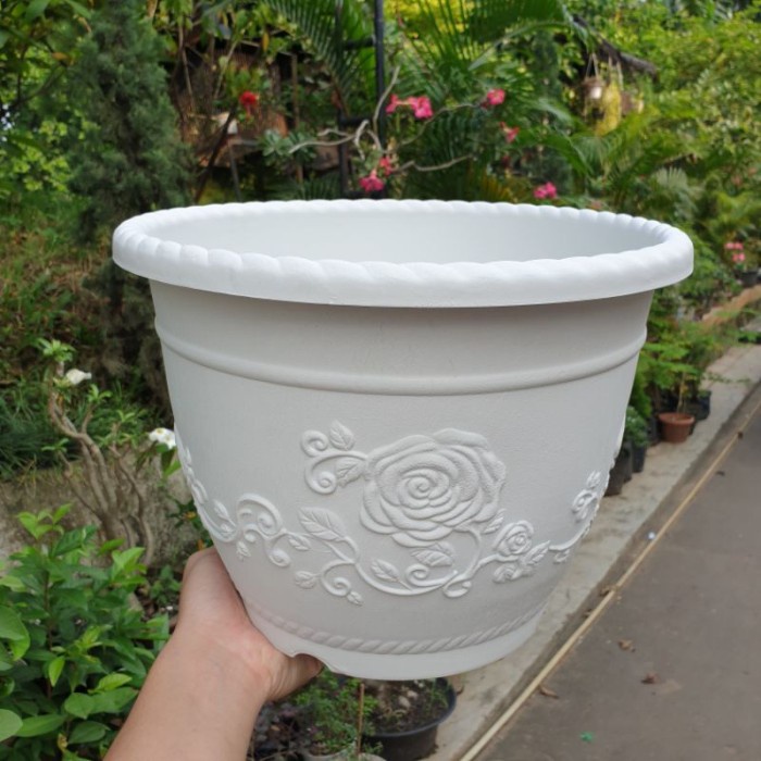 Pot bunga SHALLOM GLORY 30 Pot putih Motif bunga timbul cantik tebal