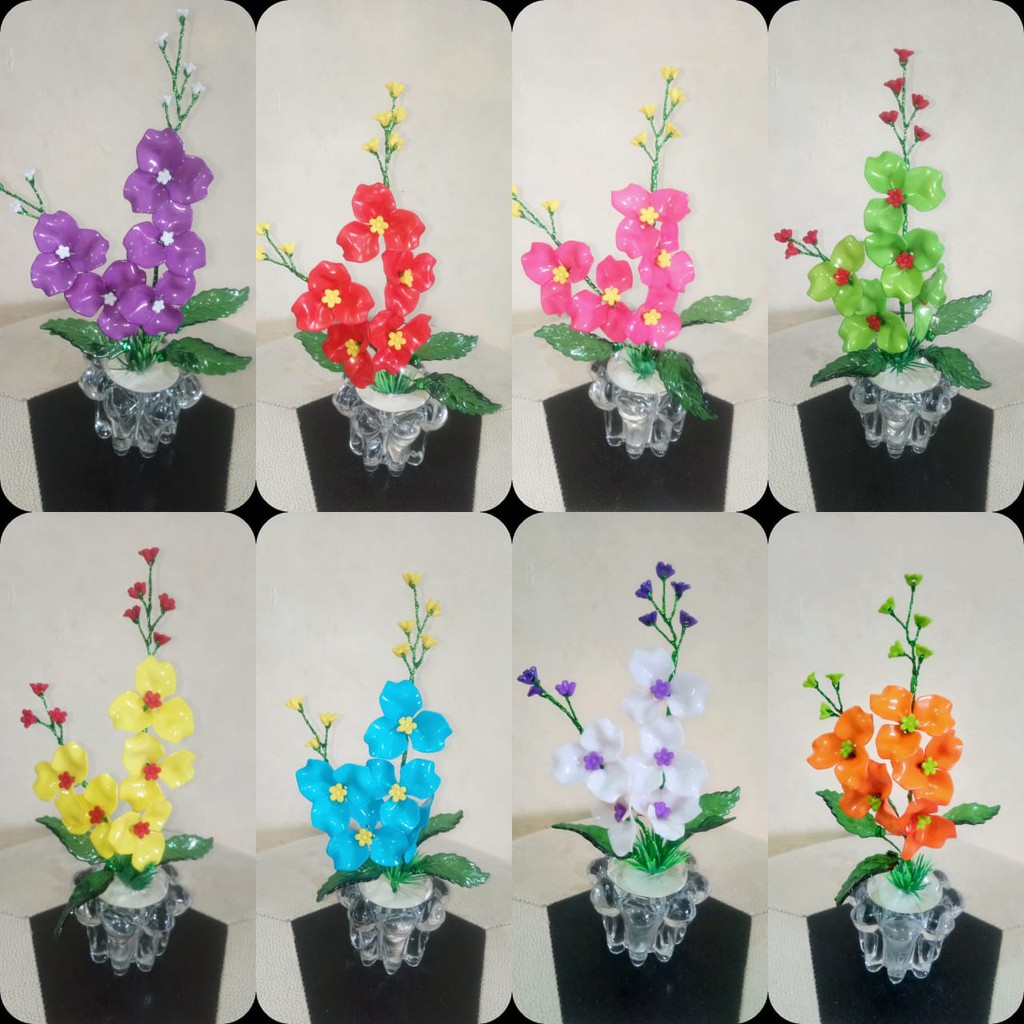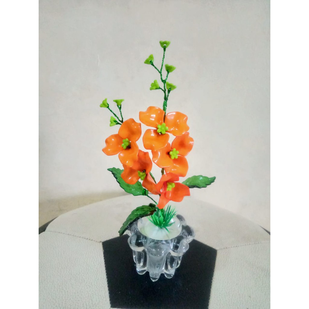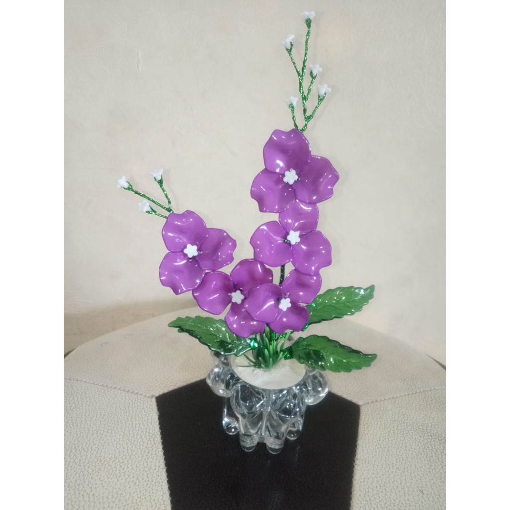 Pot + bunga anggrek/ bunga akrilik/ bunga artificial