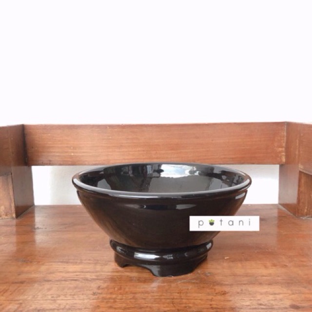 Pot keramik hitam mangkok / pot bonsai / pot succulent - A517SS