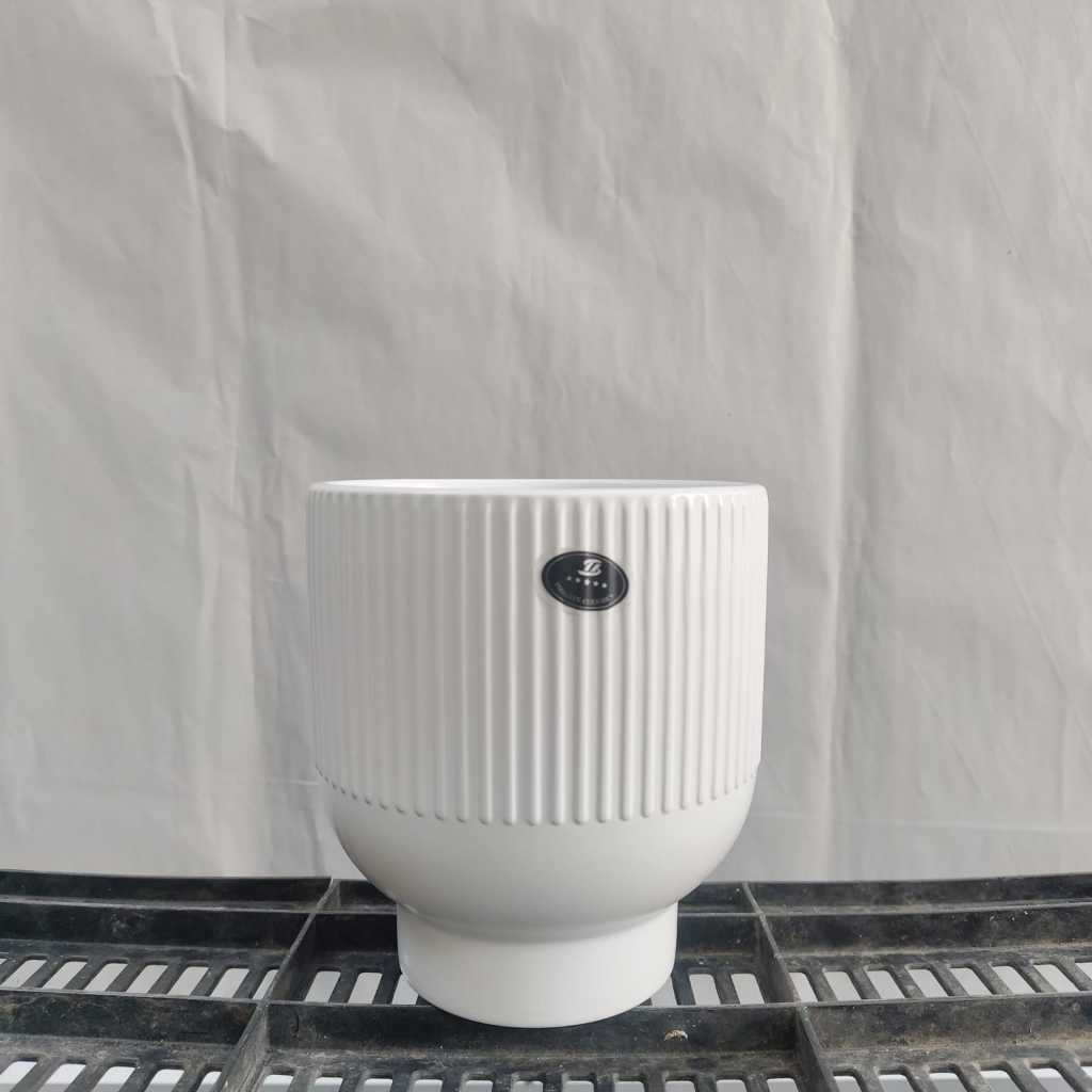 Pot keramik pot bunga pot tanaman hias model bulat berkaki motif garis-garis
