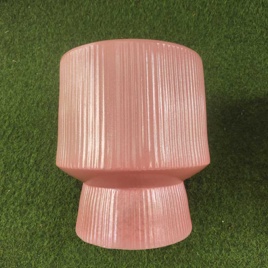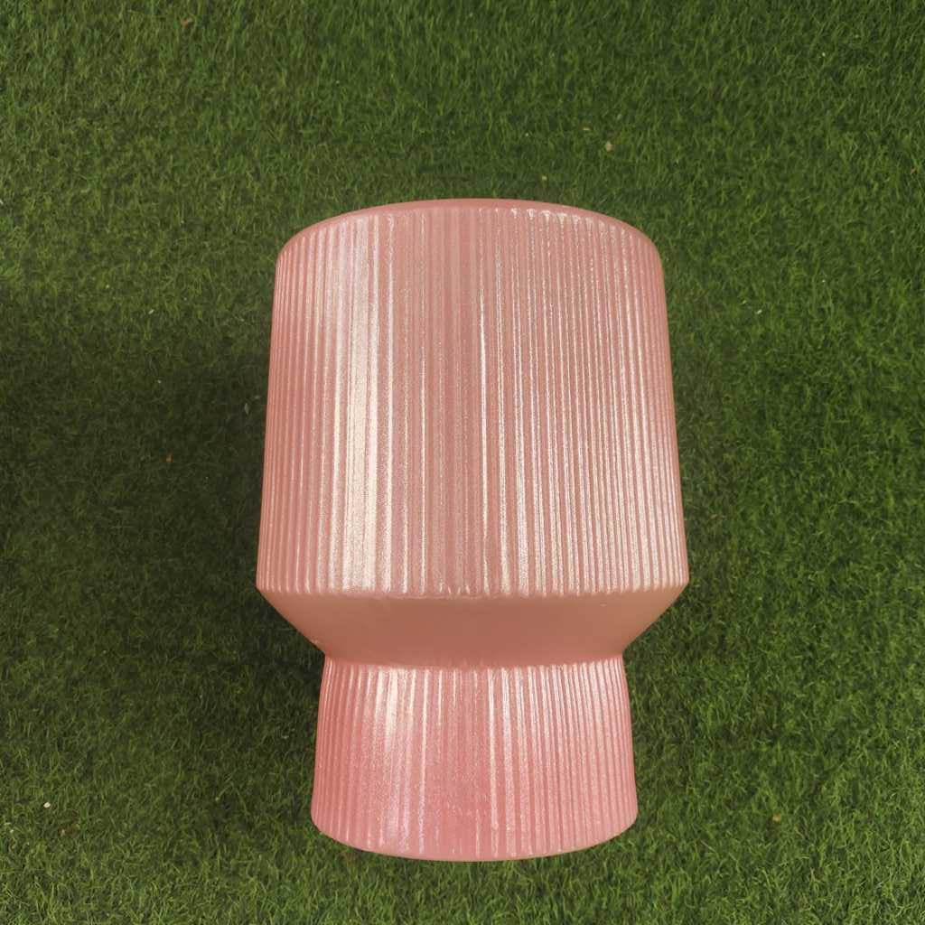 Pot keramik pot tanaman hias pot bunga model bulat motif garis-garis warna pink