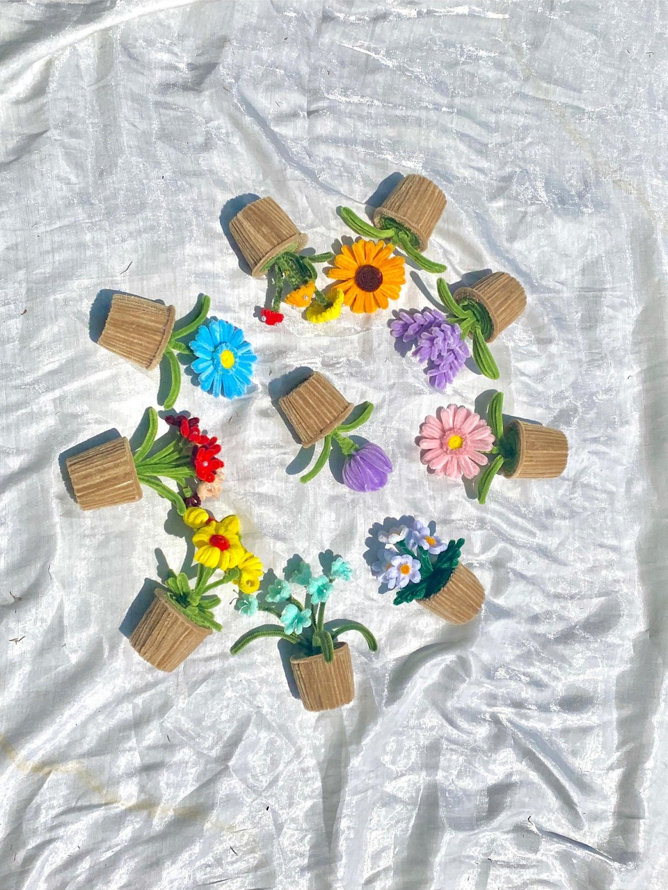 Pot mini bunga kawat bulu I Pot bunga mini pipecleaner