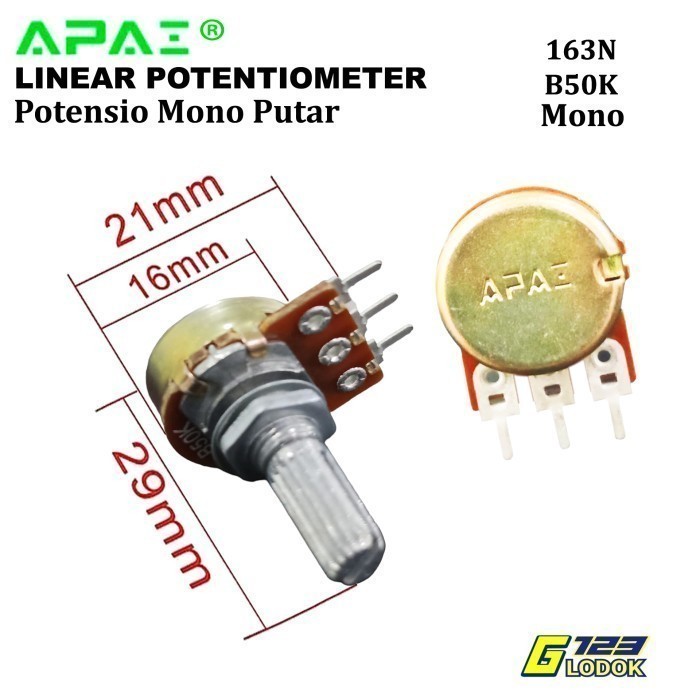 Potensio Mono Potentio B 1K 2K 5K 10K 20K 50K 100K 250K 500K 1M OHMM