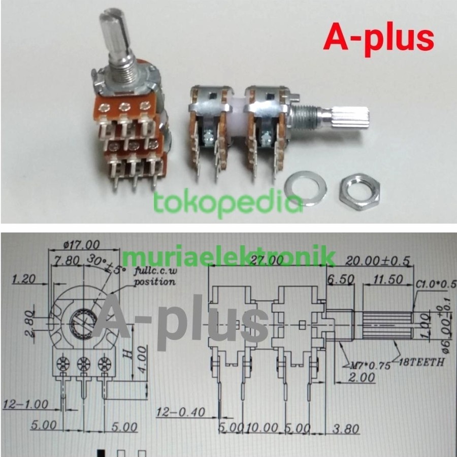 Potensio dobel stereo C50K C100k A-plus / Potensiometer double stereo C 50k c 100K Aplus