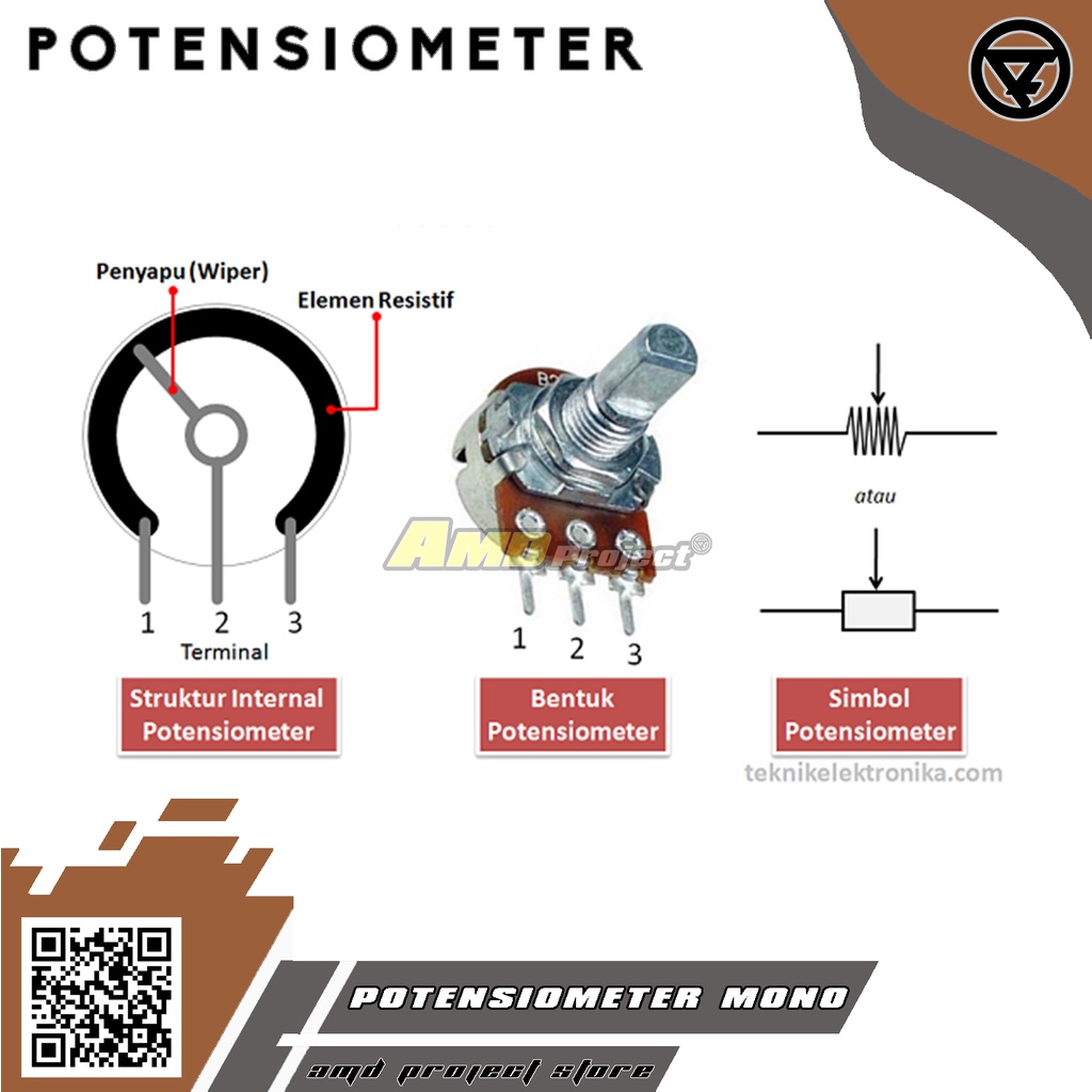 Potensiometer Mono Potensio Meter Linear 1K 5K 10K 20K 50K 100K 250K 500K 1M Ohm Variable Resistor Knop