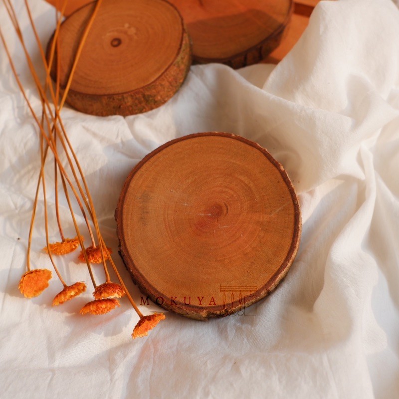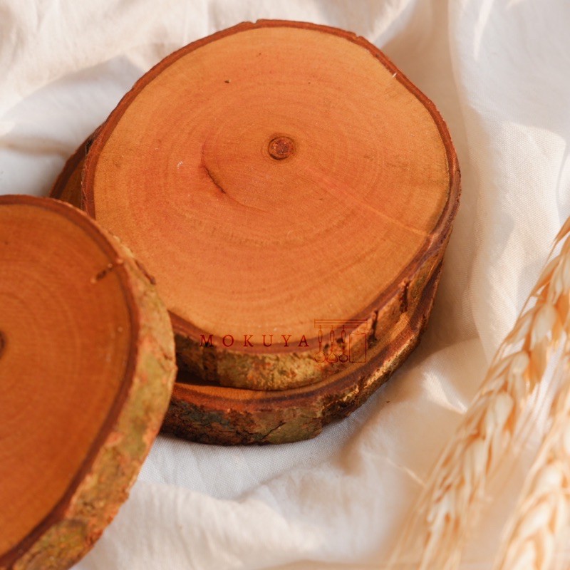 Potongan Kayu Kecil (7-10 cm). Coaster Kayu. Hiasan Mahar. Wood Slice
