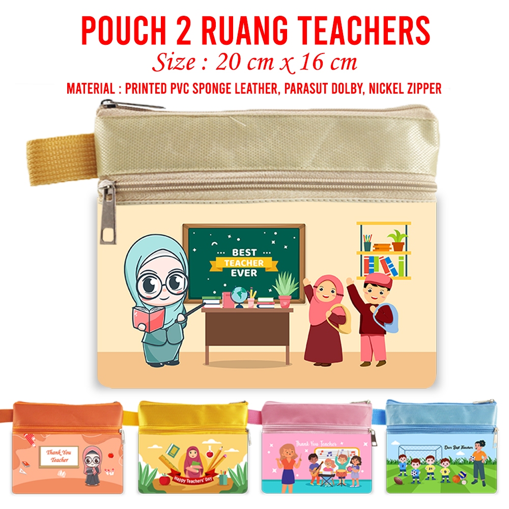 Pouch 2 RUANG Hari Guru Happy Teacher Day Souvenir Kado Kenang Kenangan Guru Perpisahan Suvenir Mini Wallet Pouch Terima Kasih atau Perpisahan