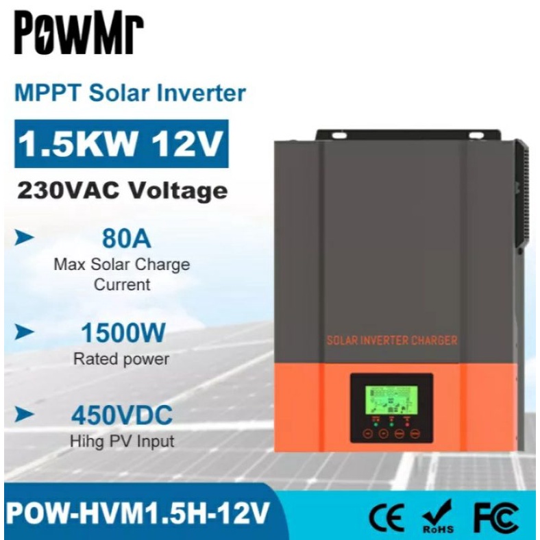 PowMr High frequency 1.5KVA 1500W 12V 220V Hybrid Solar Inverter