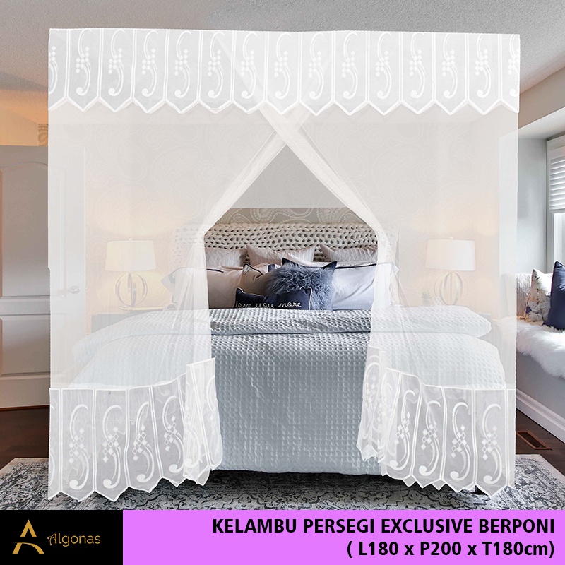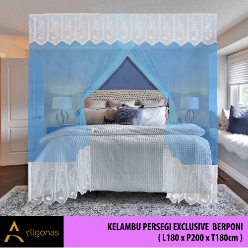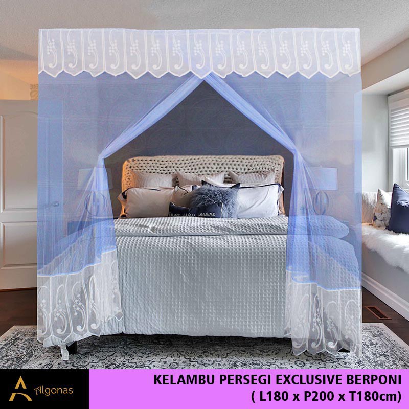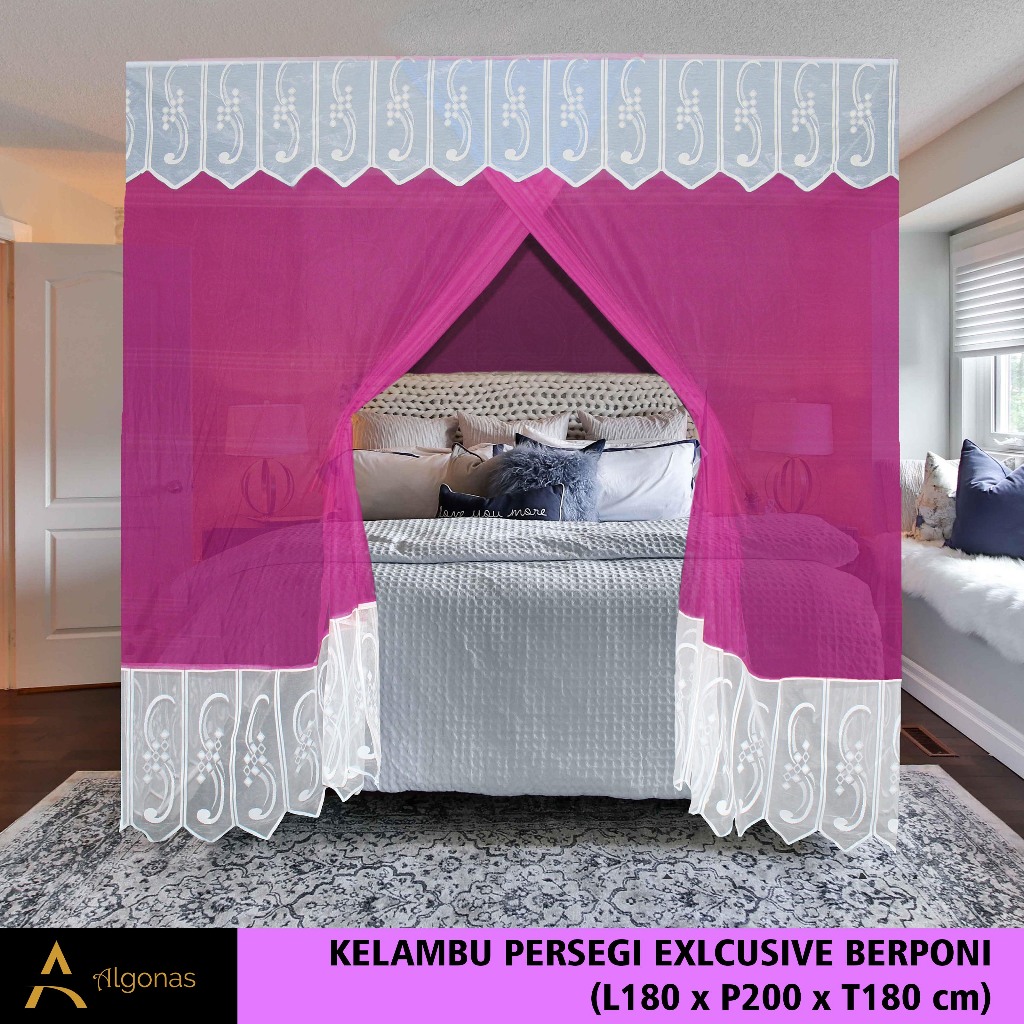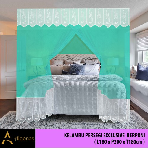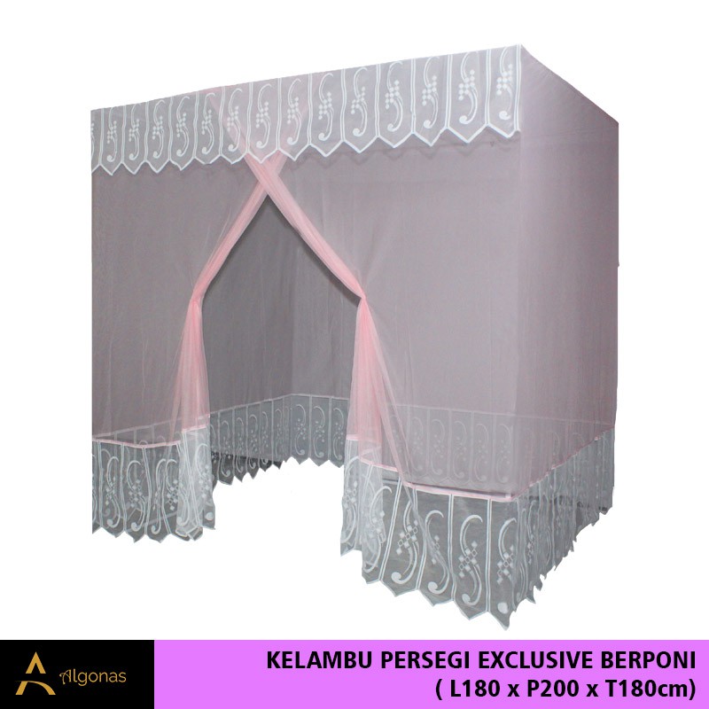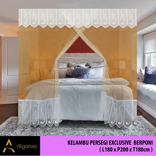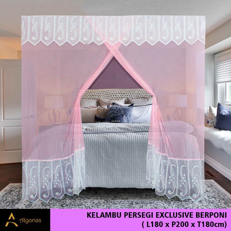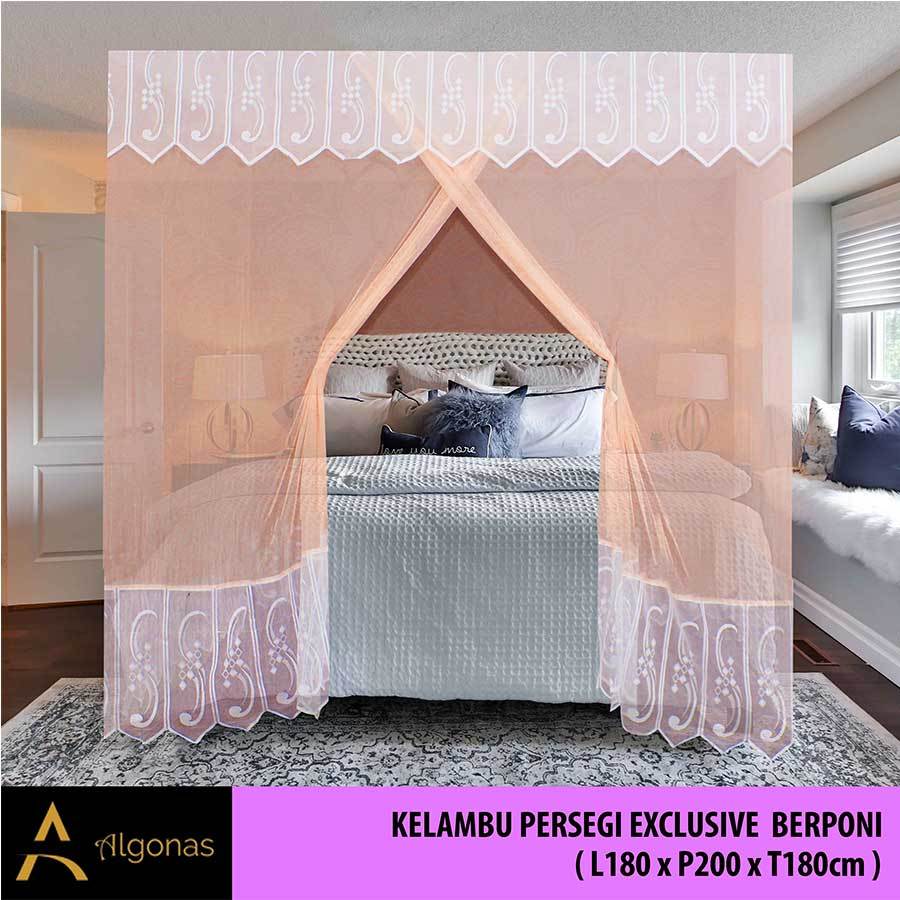 Kelambu Tidur Persegi Exclusive Dengan Poni Cantik (180x200x180) Algonas