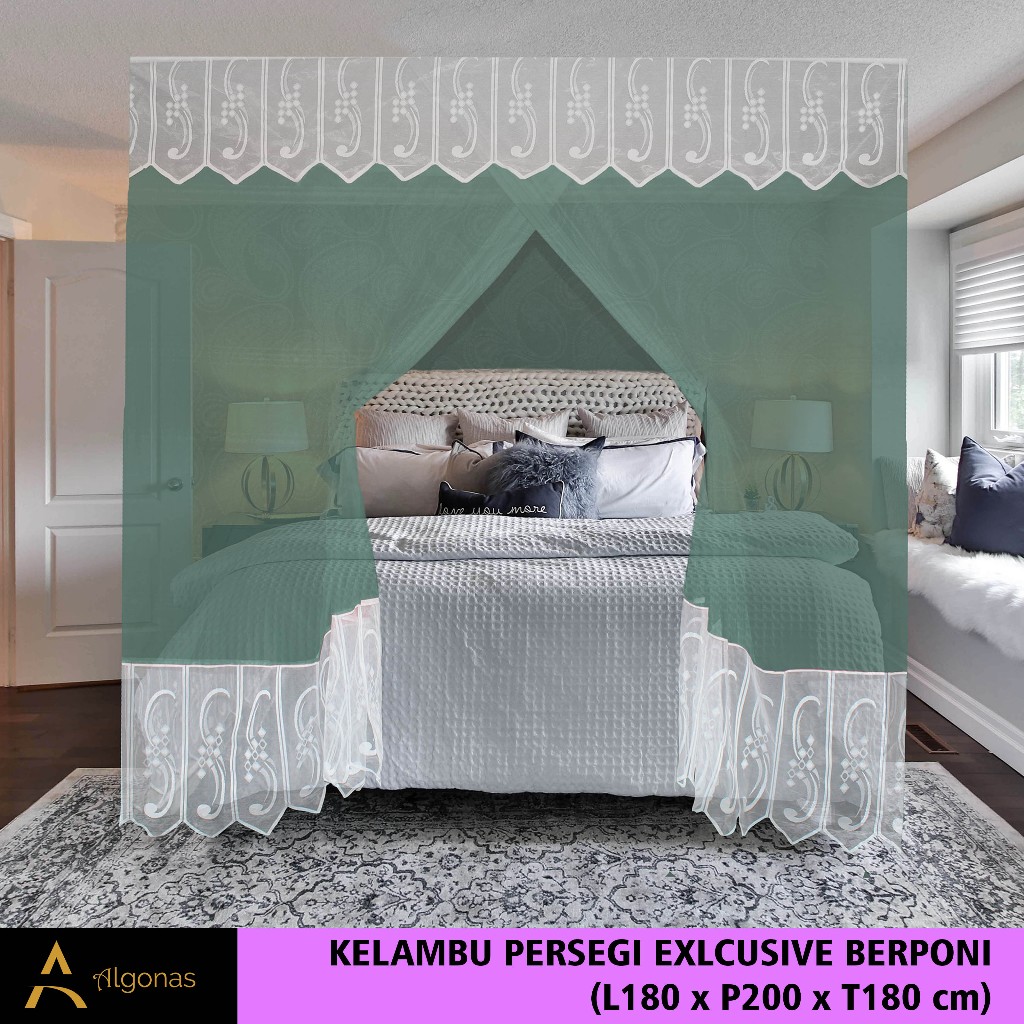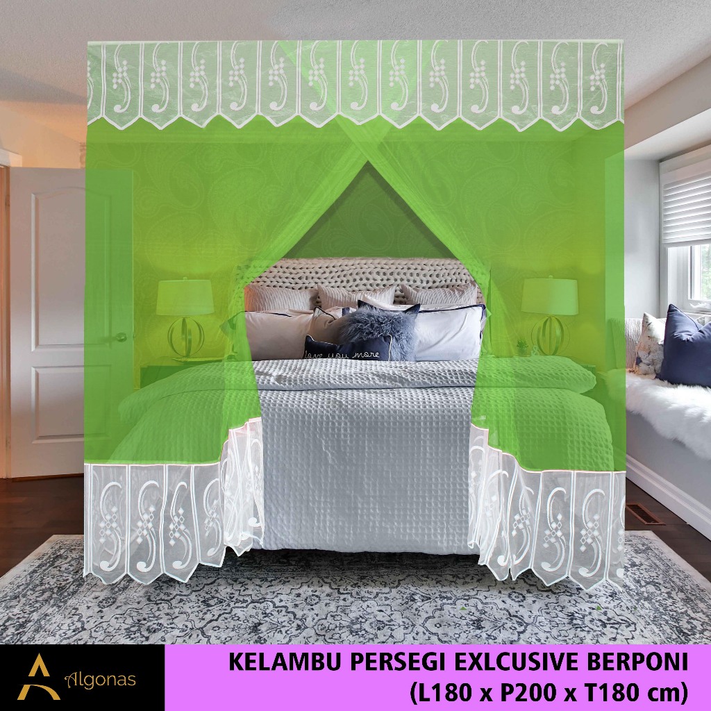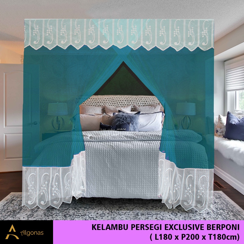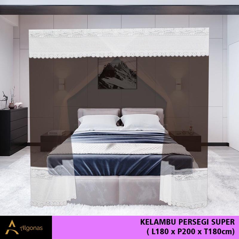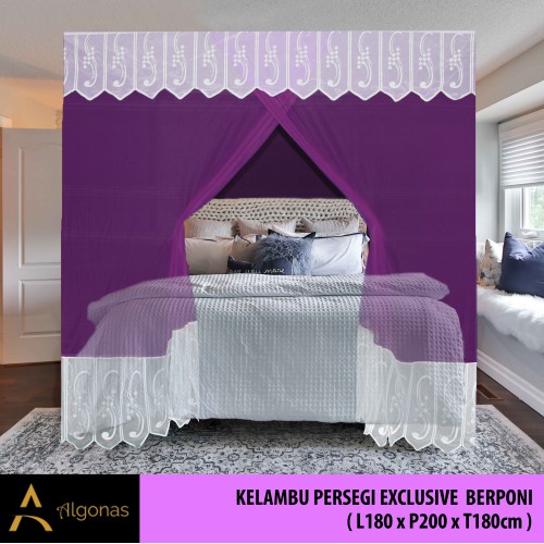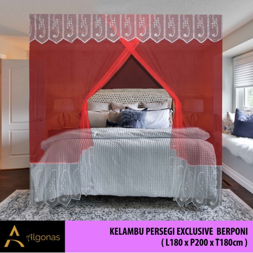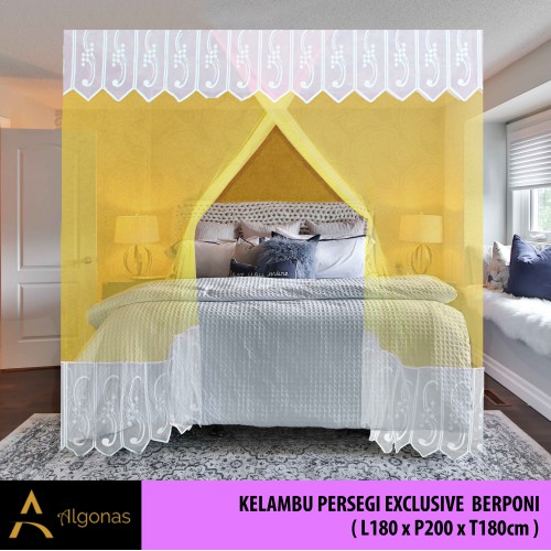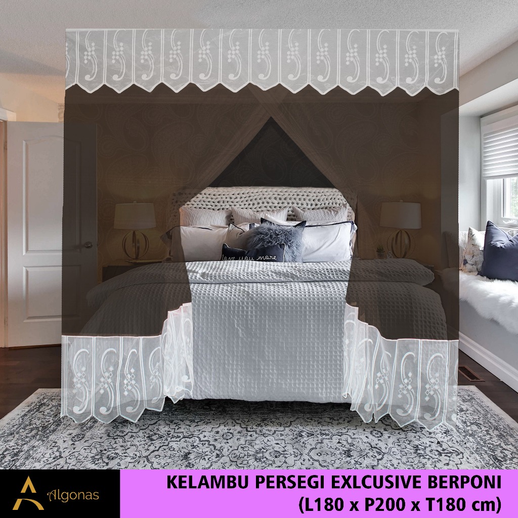 Kelambu Tidur Persegi Exclusive Dengan Poni Cantik (180x200x180) Algonas