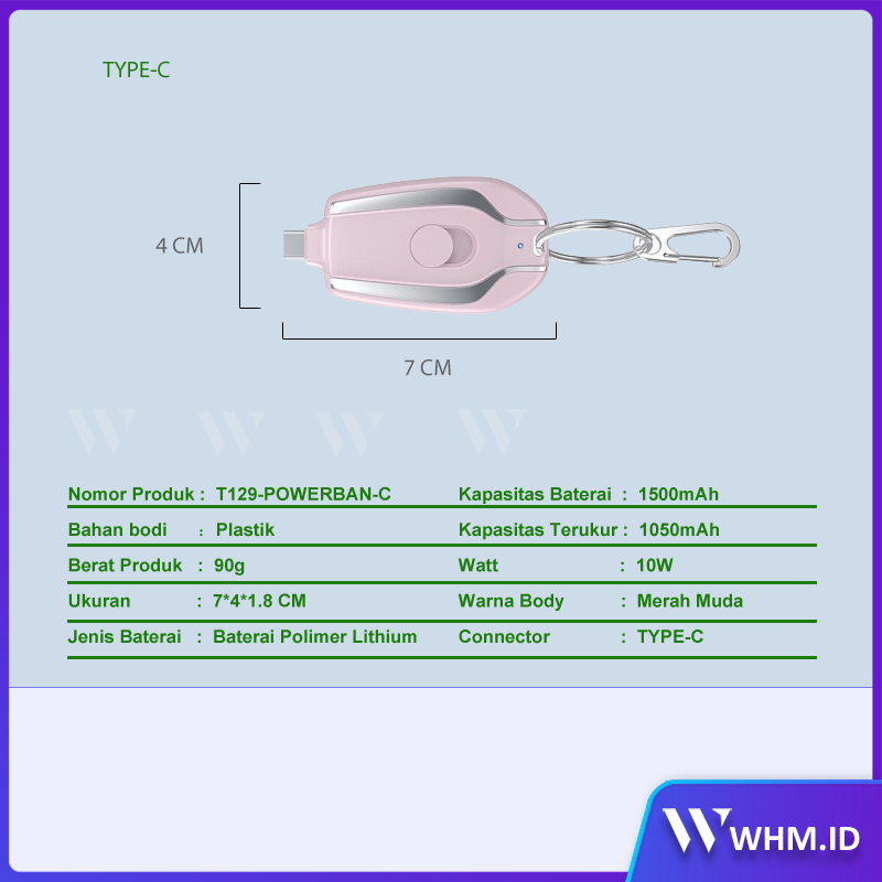 Power Bank Type-C dan IPHONE travel Kunci power bank 1500mAh Mini Power bank Penuh Portabel Pengisian Cepat