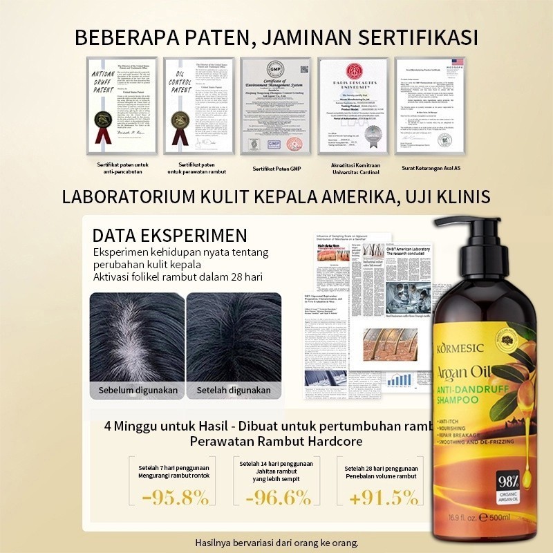 COD shampoo pelurus rambut permanen tanpa catok 500ml Argan Oil+keratin smoothing rambut/rambut rusak dan kering Mencerahkan kilau Deep Moisture