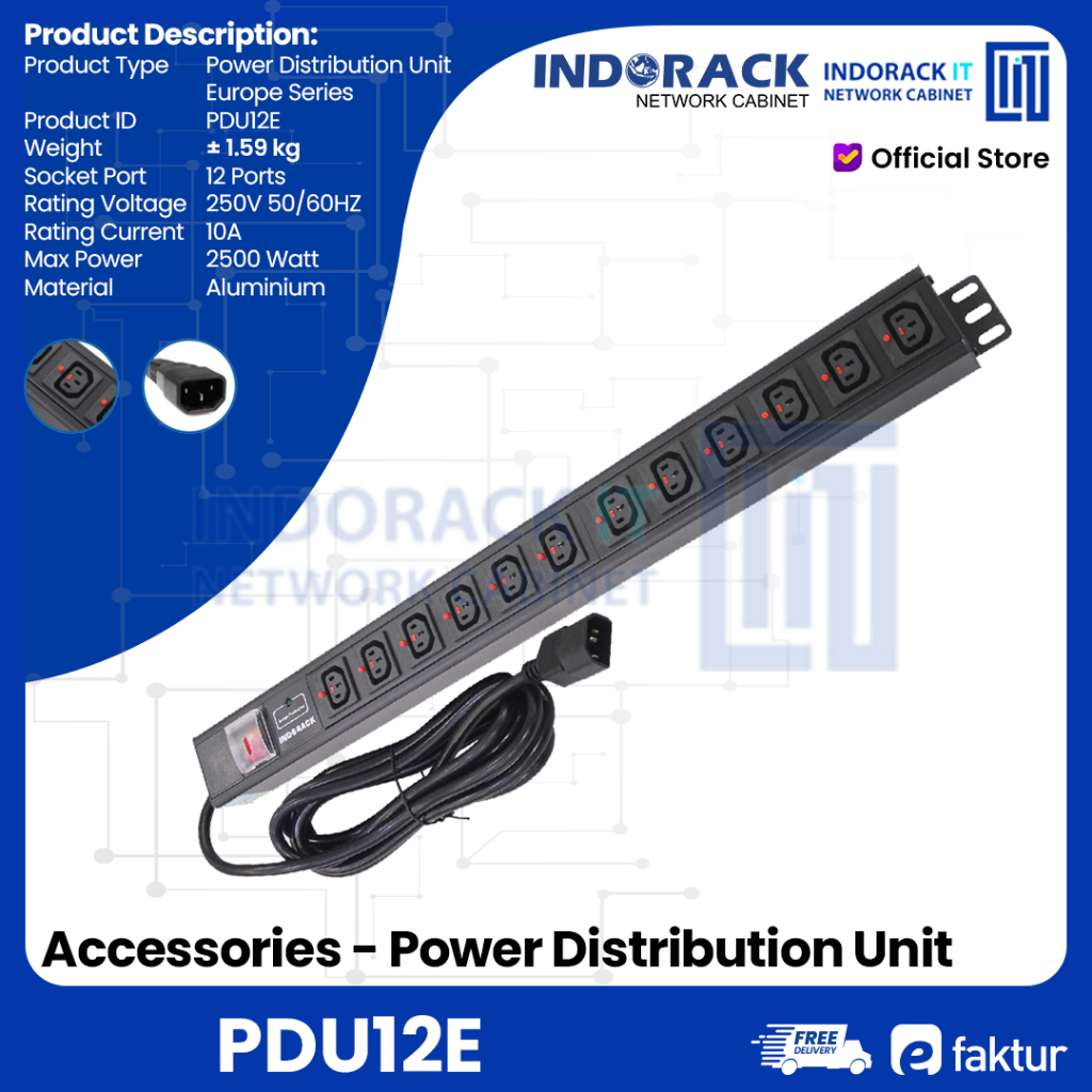 Power Distribution Unit Stop Kontak Colokan Europe 12 Outlet PDU12E