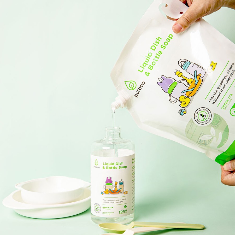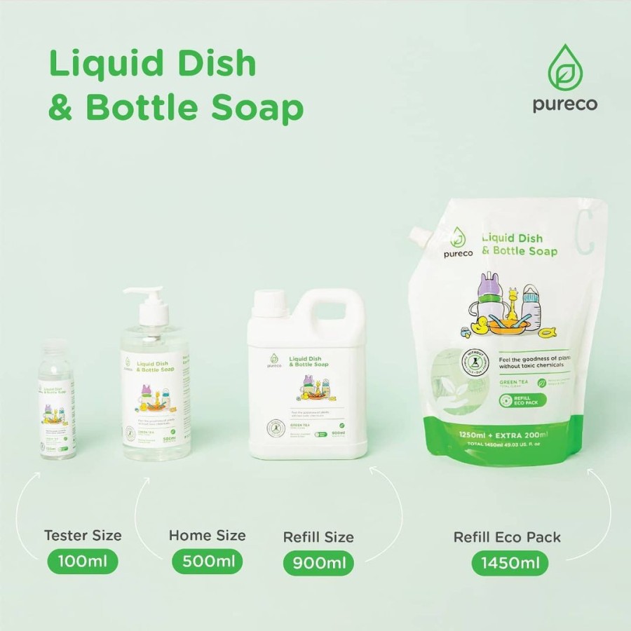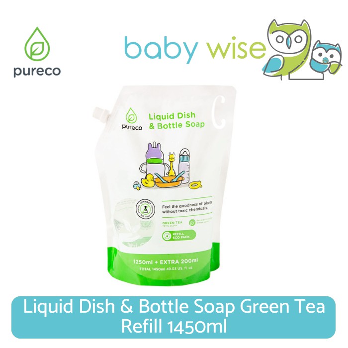 Pureco Liquid Dish & Bottle Soap Green Tea Refill 1450ml