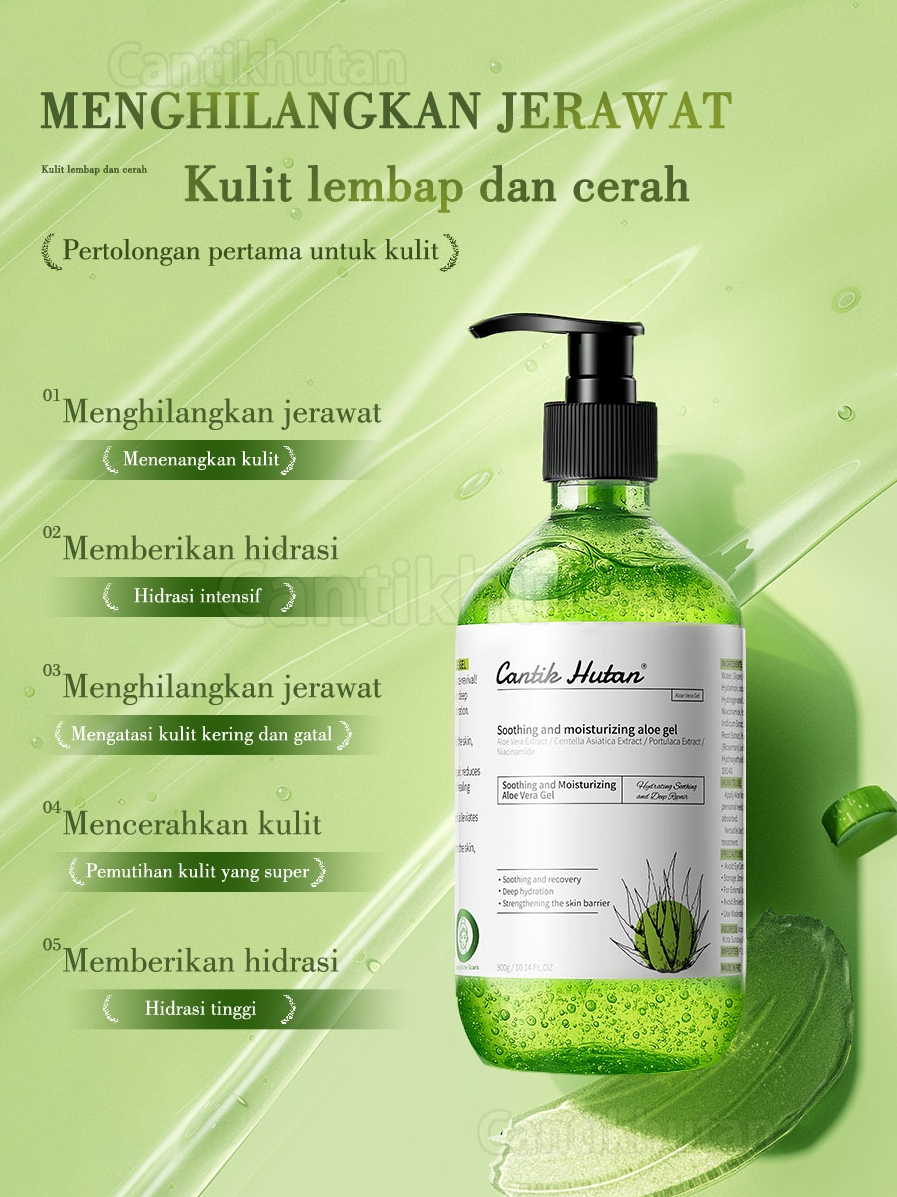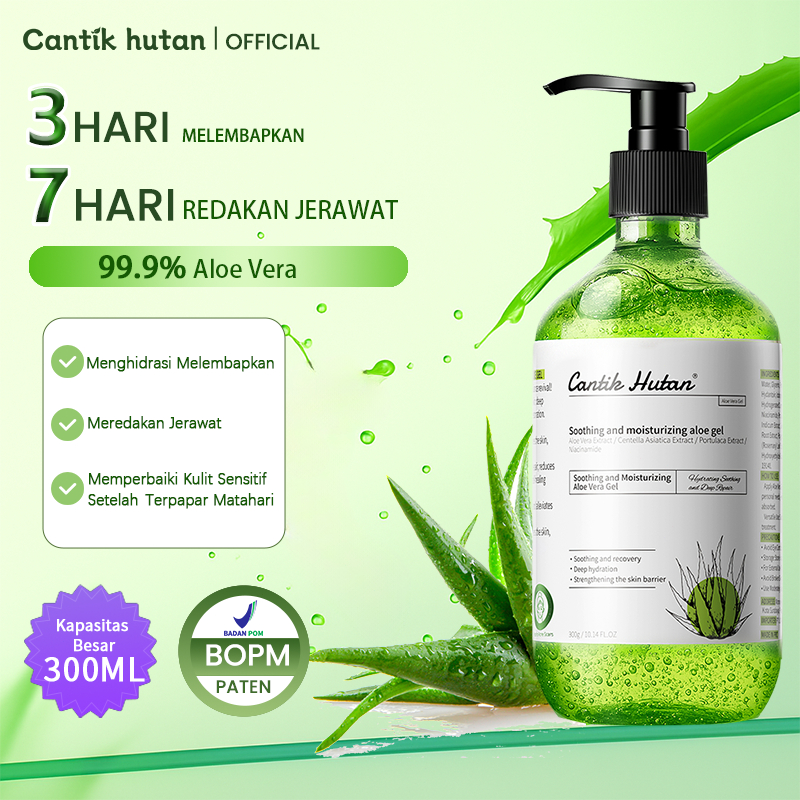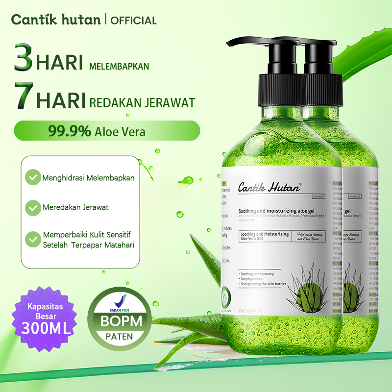 Cantik Hutan Aloe Vera Gel 300ml Menenangkan Meredakan Sunburn Memperbaiki Kulit Rusak Aman Untuk Kulit Sensitif