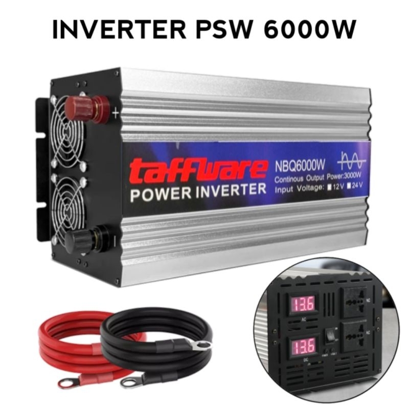 Power Inverter DC ke AC 6000W Pure Sine Wave DC 12V 24V 48V 60V to AC 220V 6000 Watt Inventer Taffware Gelombang Sinus Murni PSW