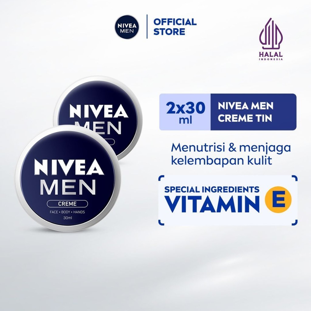 (PAKET HEMAT ISI 2) NIVEA MEN Cream Moisturizer Creme Tin 30ml - Hand body krim pria cream mositurizer multifungsi kaleng biru tua kulit kering kasar bersisik pecah-pecah sikut tumit memperbaiki skin barrier lembap wangi - Vitamin E, UVA UVB Filter