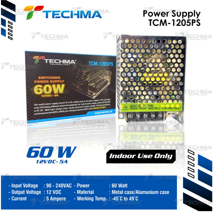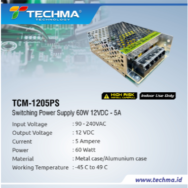 Power Supplay CCTV 12v-5a 60 Watt TECHMA TCM-1205PS