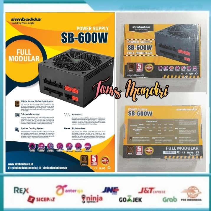 Power Supply Gaming Simbadda 600 Watt Full Modular PSU 600W
