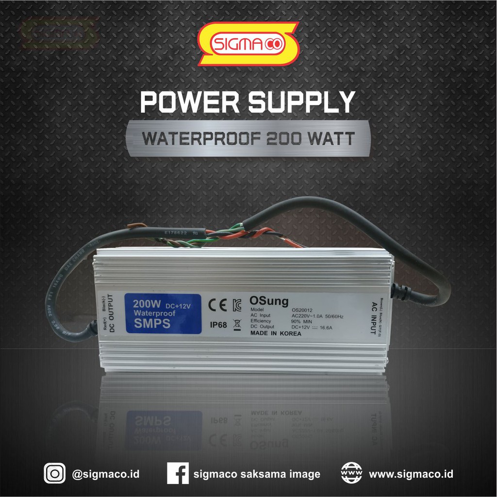 Power Supply Waterproof 12V 200W 16.6A - 12 Volt 200 Watt 16.36 Ampere - Garansi 1 Tahun