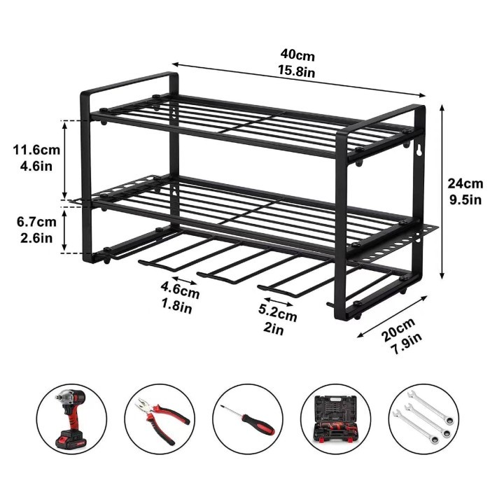 Power Tool Storage Rack Wall Mounted Organizer - Rak Gantung Dinding Alat Perkakas Multifungsi Kuat Kokoh