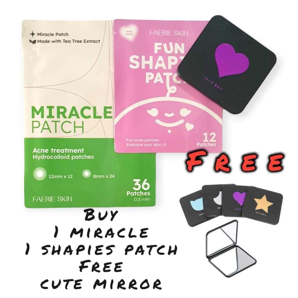 [Bonus Cermin Rias] Fairie Skin Miracle Acne Patch (36 dots) + Fun Shapies Patch (12 dots) | Sticker Jerawat Acne Patch | Pimple Patch