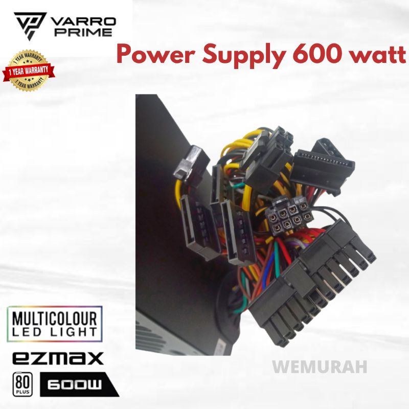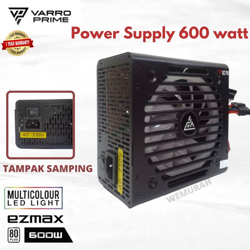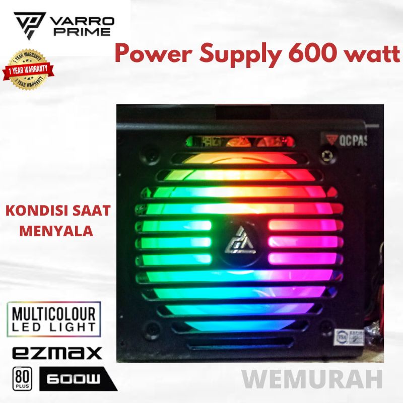 PowerSupply 600Watt 80+ RGB - Led Light PSU - Power Supply Gaming