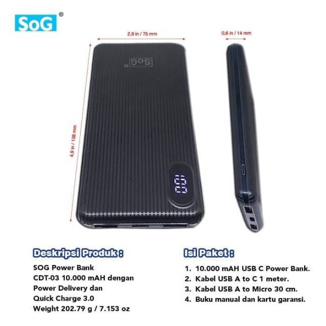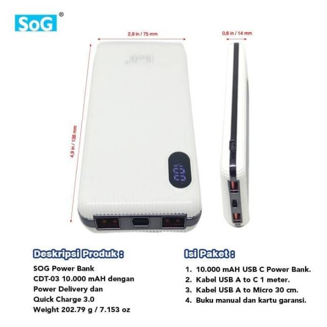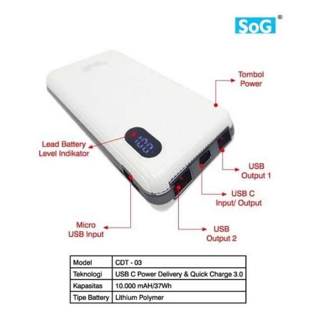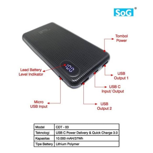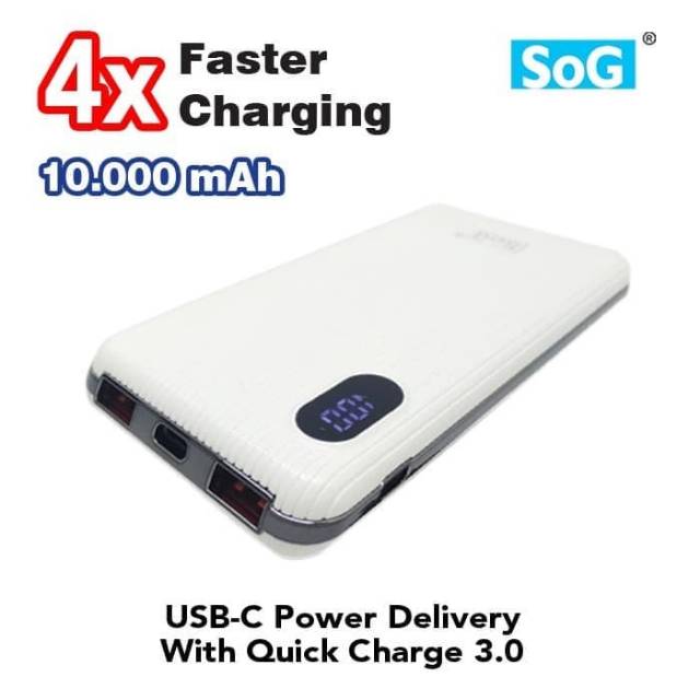 Powerbank Power Bank HITAM 10000 mAH Dua Usb QC 3.0 dan USB C Power Delivery Hitam Putih