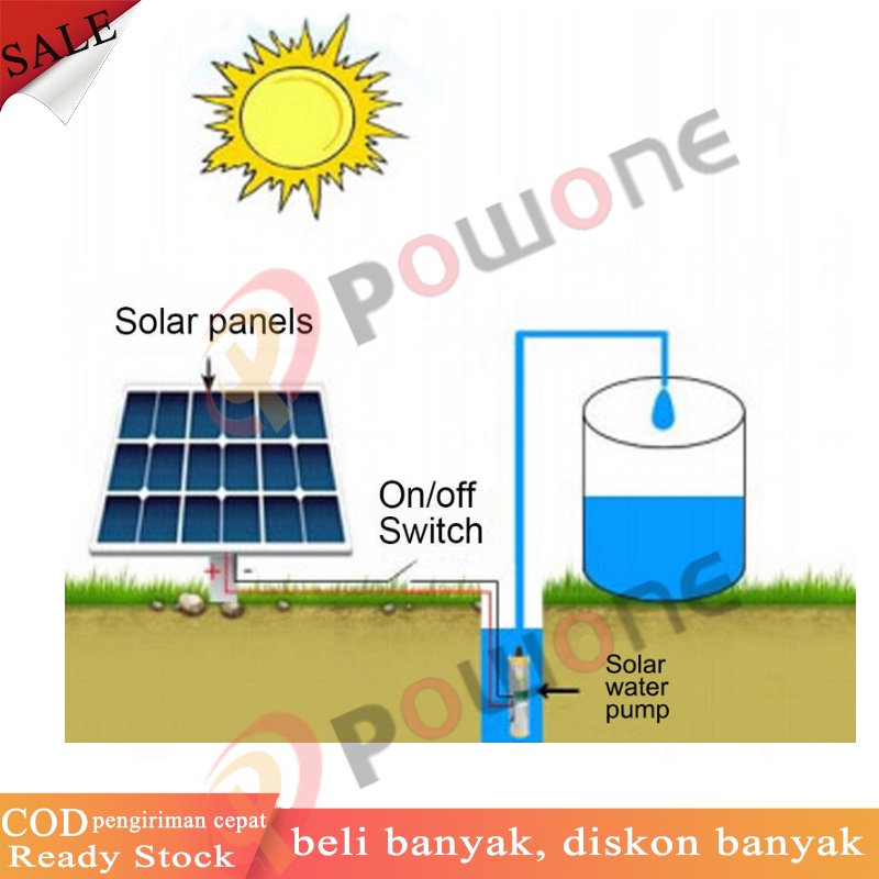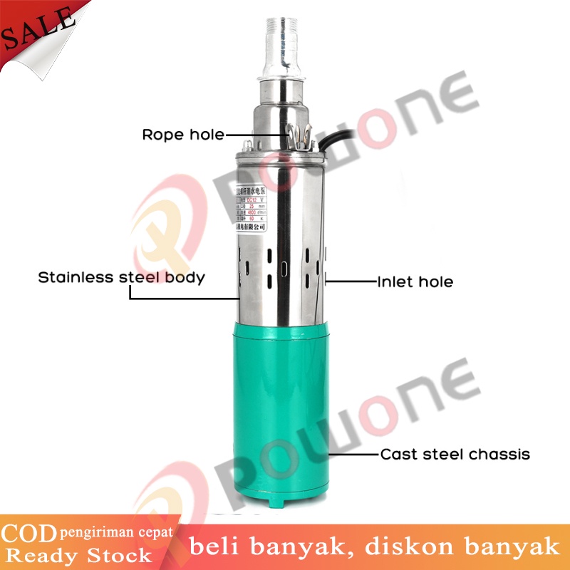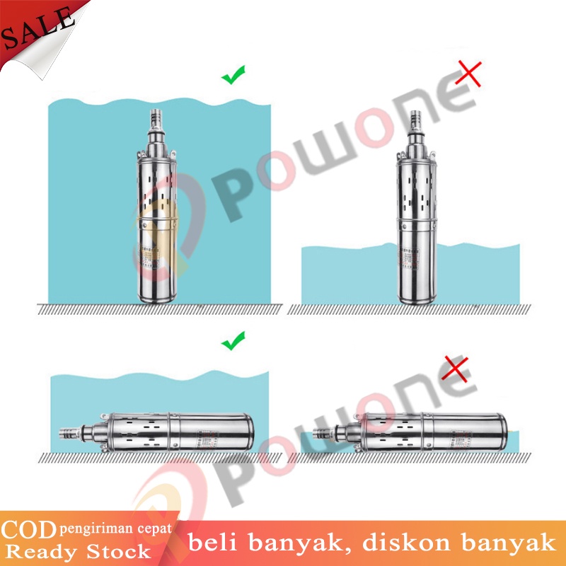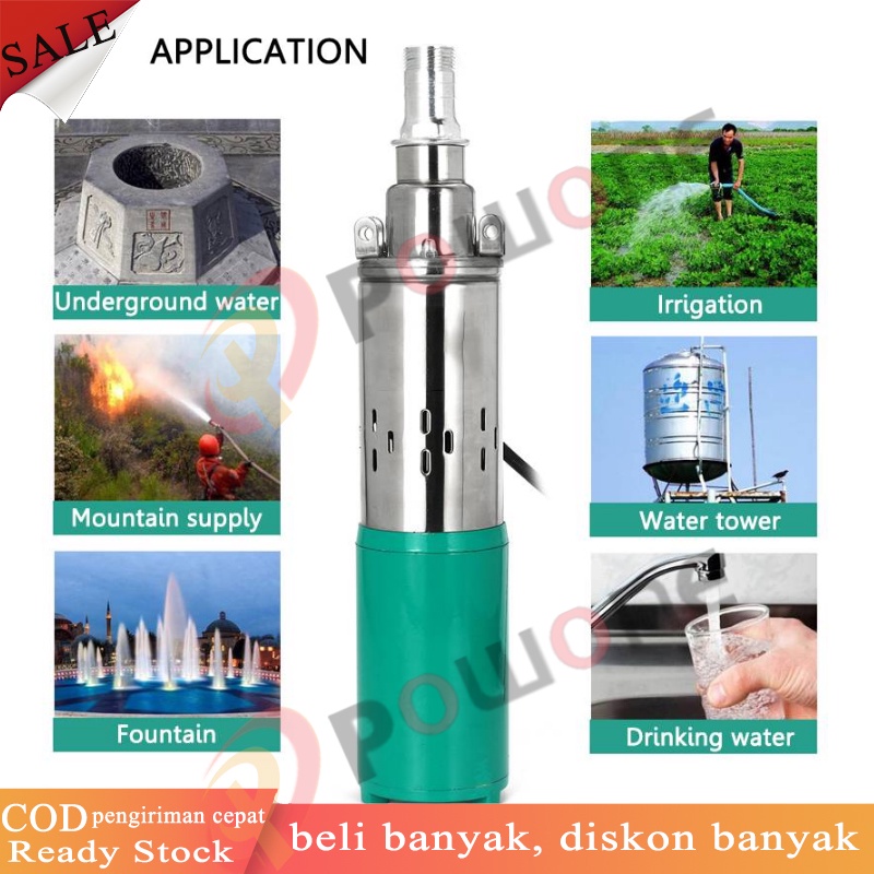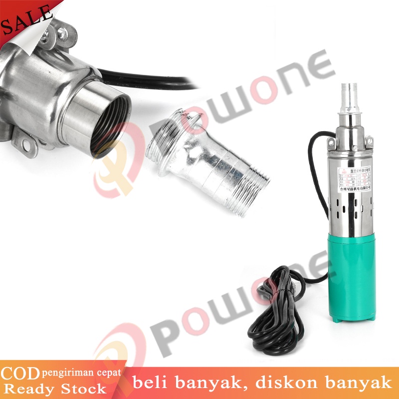 Powone 300W 12V Angkat Tinggi 35m Submersible Pump Deep Well Pump Pompa Submersible Pompa Sumur Dalam untuk Taman Rumah Irigasi Pertanian Pompa Air Tenaga Surya Stainless Steel (biru)