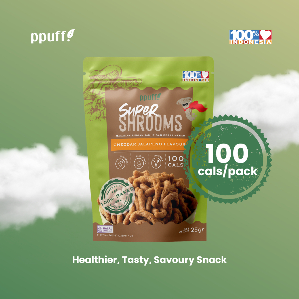 Ppuff! SuperShrooms Cheddar Jalapeno [25gr] | Snack Rendah Kalori | Healthy Snack