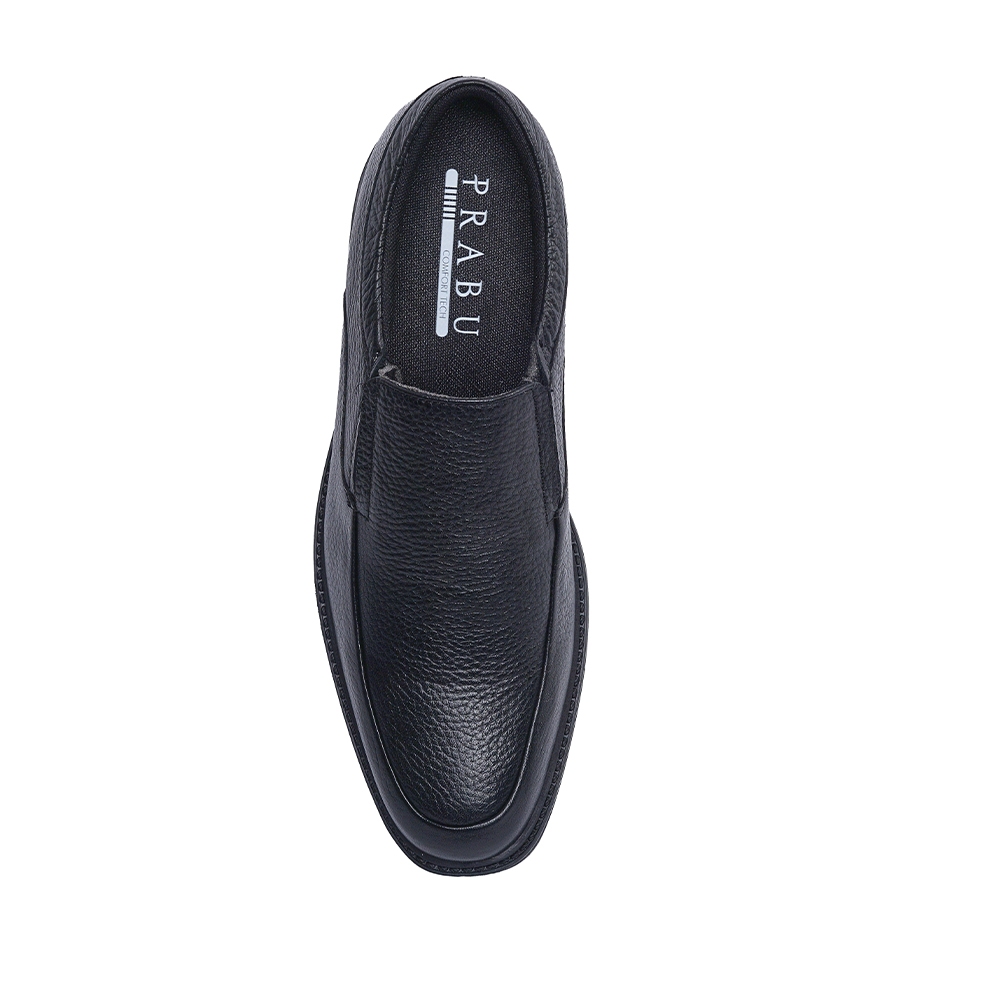 Prabu - Sepatu Kulit Slip On Pria Aswin Black Milling-Hitam