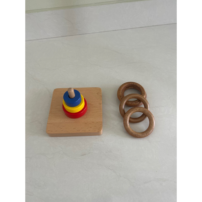 Preloved Game Montessori Infant Single Vertical Dowel Loose Ring Disc Cubes Sensorial Stacker Stacking Tower