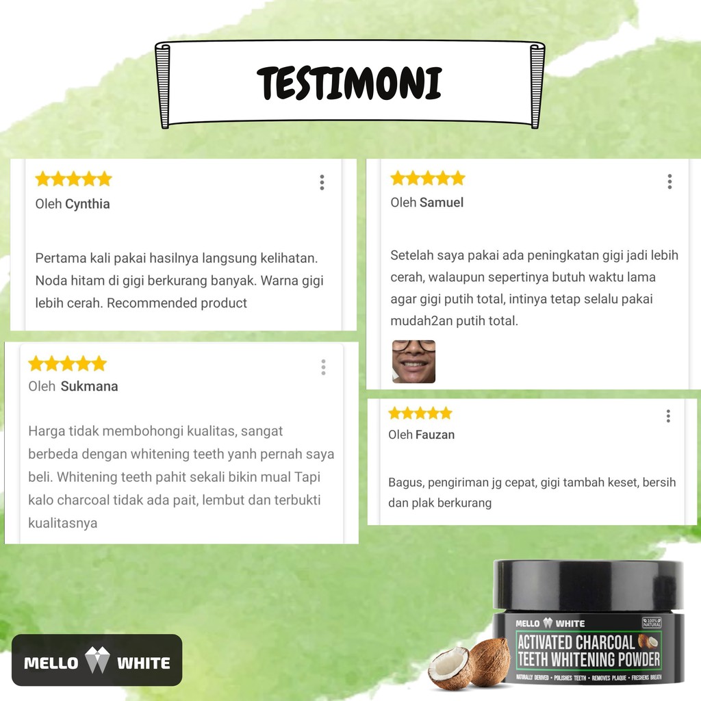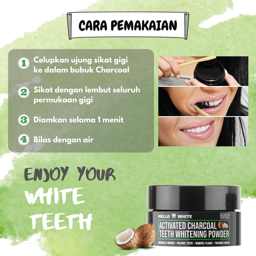 Premium Charcoal Pemutih Gigi Alami - Mello White Teeth Whitening Powder