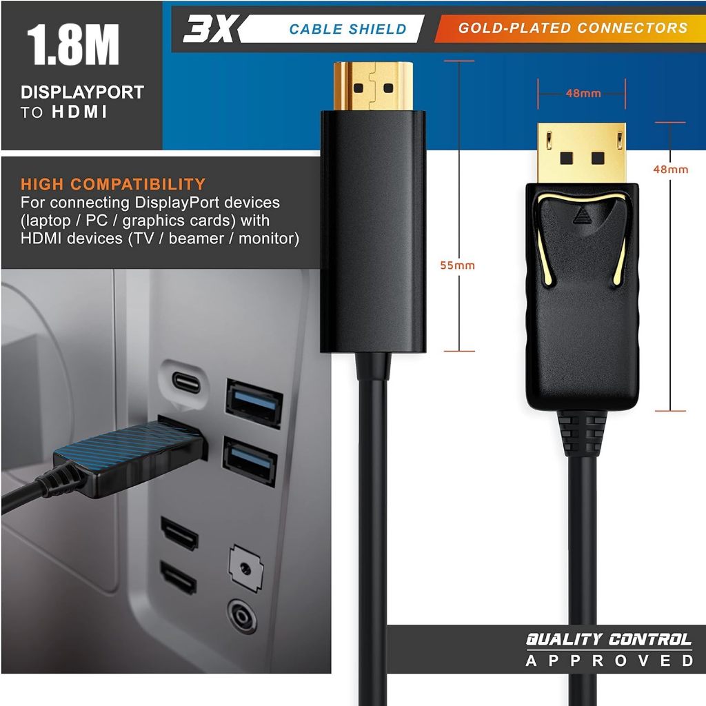 Premium Full HD Kabel Display Port to HDMI Cable DP To HDMI 4K 1080P