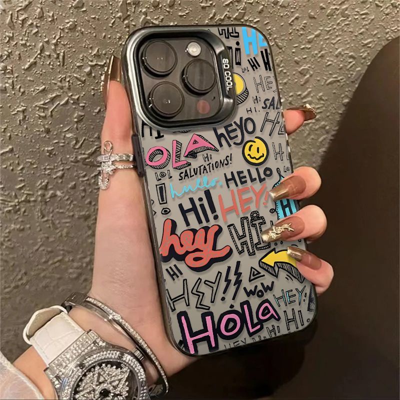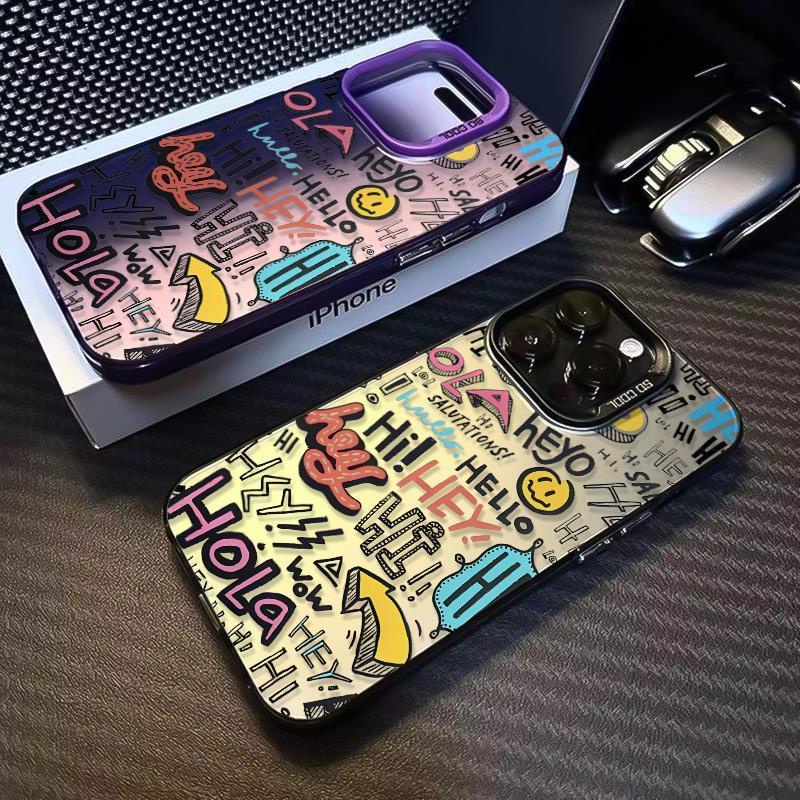 Premium Matte Hard Casing Hp Iphone 15 Promax Graffiti letters Case Untuk iPhone 15 14 13 11 12 pro max 11PRO Simple shockproof Casing ip13 Promax full cover