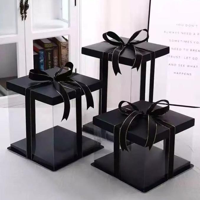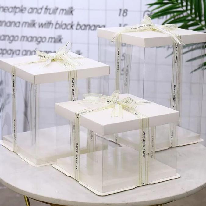 Premium Product!!! Cake Box Mika Transparan Kotak Kue Mika Gift Box Kekinian Lucu Unik Elegan Cantik Manis Hitam, Peach Biru Putih Merah Warna Lengkap All Size - Paling Dicari Produksi