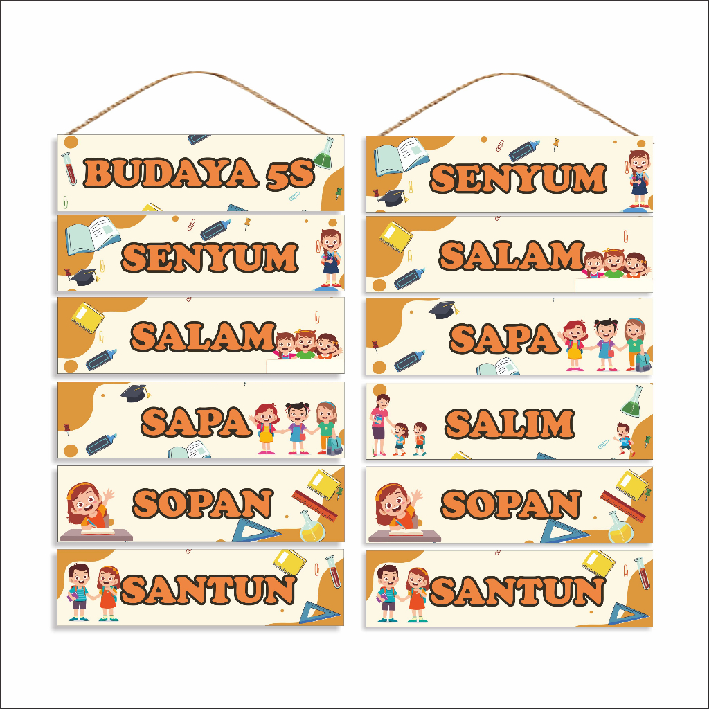 Prima Shabby Hiasan Pajangan Dinding Sekolah Kelas Budaya 5S 6S Wooden 48x30cm