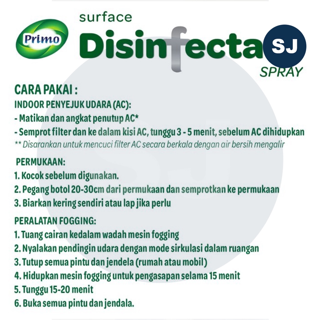 Primo Disinfektan Spray 500 ml Disinfektan Food Grade Liquid Cairan Surface