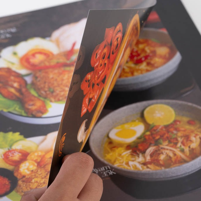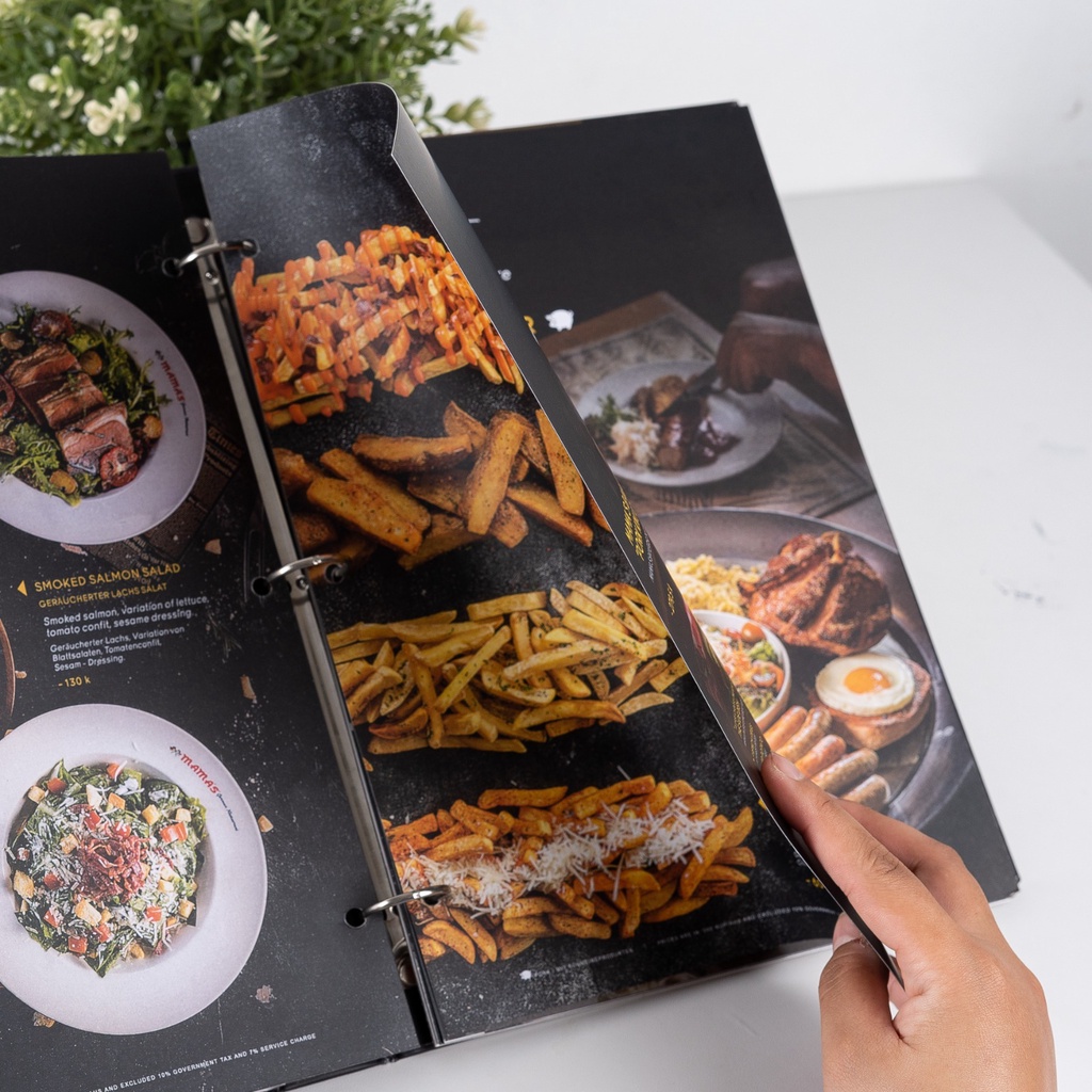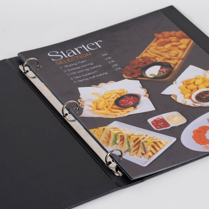 Print Buku Menu Restoran Cafe A4 Jilid Spiral Besi Selaras Printing