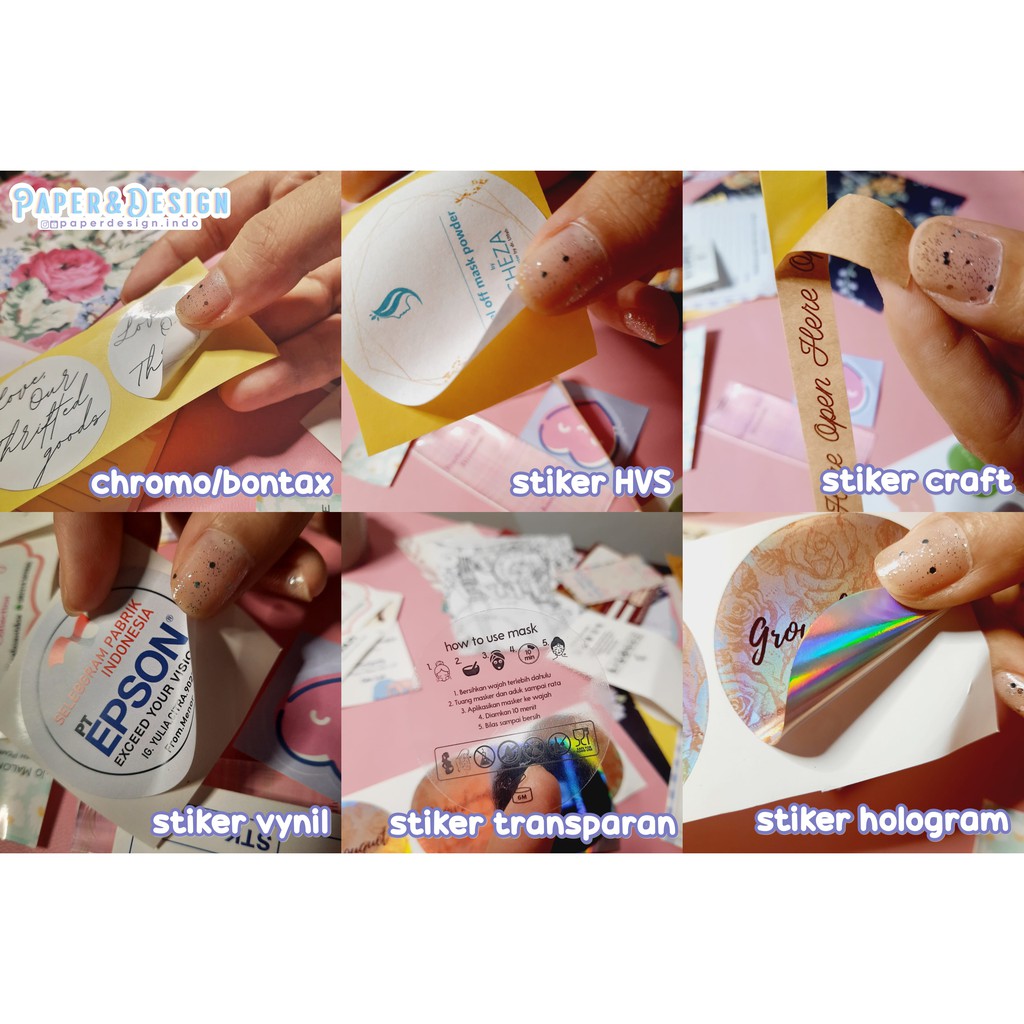Stiker Cutting Bulat Kecil 2–5 cm | Custom Label & Dekorasi Bahan Chromo, HVS, Kraft, Vinyl, Transparan