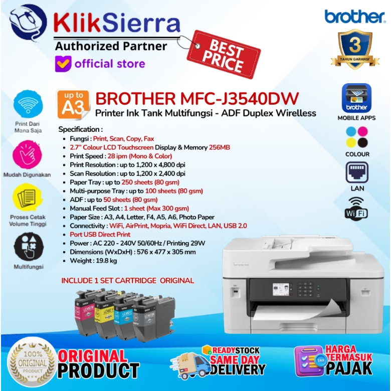 Printer A3 Brother MFC-J3540DW Inkjet Print Scan Copy Fax Duplex Wifi