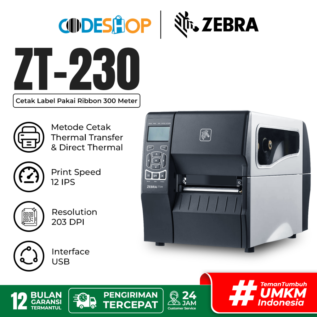Printer Barcode Industrial ZEBRA ZT 230 Cetak Resi USB Port