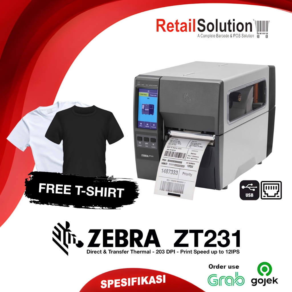 Printer Barcode Label Industri 203 DPI USB LAN - Zebra ZT231 ZT-231