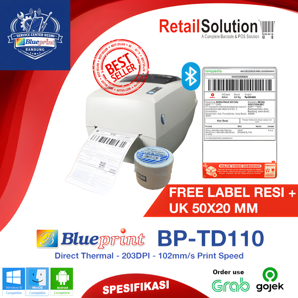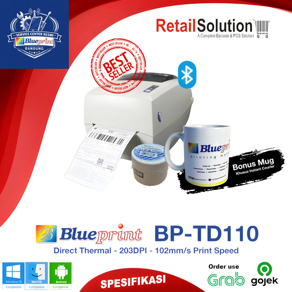 Printer Barcode Label Thermal USB Bluetooth - Blueprint TD110 TD-110 TD110BT TD-110BT